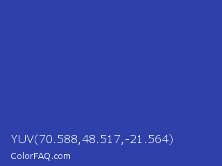 YUV 70.588,48.517,-21.564 Color is a normal blue color and the nearest color is Governor Bay #2f3cb3. Hex code #2e40a9 and RGB value is rgb(46,64,169). In RGB color space, this color is composed of 18% red, 25% green, 66% blue, In CMYK color space, this color is composed of 73% cyan, 62% magenta, 0% yellow , 34% black , In HSL color space, this color has a hue angle of 231° , 57% saturation and 42% lightness.