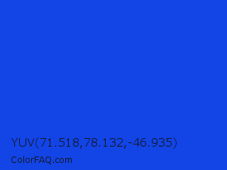 YUV 71.518,78.132,-46.935 Color is a normal blue color and the nearest color is Palatinate Blue #273be2. Hex code #1244e6 and RGB value is rgb(18,68,230). In RGB color space, this color is composed of 7% red, 27% green, 90% blue, In CMYK color space, this color is composed of 92% cyan, 70% magenta, 0% yellow , 10% black , In HSL color space, this color has a hue angle of 226° , 85% saturation and 49% lightness.
