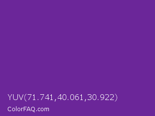 YUV 71.741,40.061,30.922 Color is a normal purple color and the nearest color is Rebecca Purple #663399. Hex code #6b2699 and RGB value is rgb(107,38,153). In RGB color space, this color is composed of 42% red, 15% green, 60% blue, In CMYK color space, this color is composed of 30% cyan, 75% magenta, 0% yellow , 40% black , In HSL color space, this color has a hue angle of 276° , 60% saturation and 37% lightness.