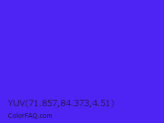 YUV 71.857,84.373,4.51 Color is a normal indigo color and the nearest color is Han Purple #5218fa. Hex code #4d24f3 and RGB value is rgb(77,36,243). In RGB color space, this color is composed of 30% red, 14% green, 95% blue, In CMYK color space, this color is composed of 68% cyan, 85% magenta, 0% yellow , 5% black , In HSL color space, this color has a hue angle of 252° , 90% saturation and 55% lightness.