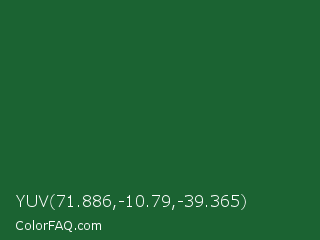 YUV 71.886,-10.79,-39.365 Color is a dark green color and the nearest color is Green Pea #1d6142. Hex code #1b6332 and RGB value is rgb(27,99,50). In RGB color space, this color is composed of 11% red, 39% green, 20% blue, In CMYK color space, this color is composed of 73% cyan, 0% magenta, 49% yellow , 61% black , In HSL color space, this color has a hue angle of 139° , 57% saturation and 25% lightness.