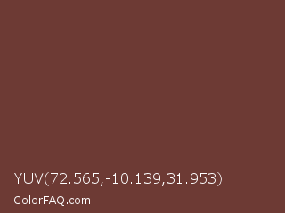 YUV 72.565,-10.139,31.953 Color is a normal red color and the nearest color is Spice #6a442e. Hex code #6d3a34 and RGB value is rgb(109,58,52). In RGB color space, this color is composed of 43% red, 23% green, 20% blue, In CMYK color space, this color is composed of 0% cyan, 47% magenta, 52% yellow , 57% black , In HSL color space, this color has a hue angle of 6° , 35% saturation and 32% lightness.