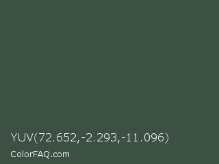 YUV 72.652,-2.293,-11.096 Color is a dark green color and the nearest color is Cabbage Pont #3f4c3a. Hex code #3c5044 and RGB value is rgb(60,80,68). In RGB color space, this color is composed of 24% red, 31% green, 27% blue, In CMYK color space, this color is composed of 25% cyan, 0% magenta, 15% yellow , 69% black , In HSL color space, this color has a hue angle of 144° , 14% saturation and 27% lightness.