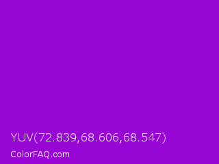 YUV 72.839,68.606,68.547 Color is a normal purple color and the nearest color is Dark Violet #9400d3. Hex code #9706d4 and RGB value is rgb(151,6,212). In RGB color space, this color is composed of 59% red, 2% green, 83% blue, In CMYK color space, this color is composed of 29% cyan, 97% magenta, 0% yellow , 17% black , In HSL color space, this color has a hue angle of 282° , 94% saturation and 43% lightness.