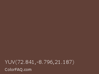 YUV 72.841,-8.796,21.187 Color is a dark red color and the nearest color is Millbrook #594433. Hex code #614037 and RGB value is rgb(97,64,55). In RGB color space, this color is composed of 38% red, 25% green, 22% blue, In CMYK color space, this color is composed of 0% cyan, 34% magenta, 43% yellow , 62% black , In HSL color space, this color has a hue angle of 13° , 28% saturation and 30% lightness.