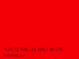 YUV 72.928,-33.489,148.276 Color is a normal red color and the nearest color is KU Crimson #e8000d. Hex code #f20005 and RGB value is rgb(242,0,5). In RGB color space, this color is composed of 95% red, 0% green, 2% blue, In CMYK color space, this color is composed of 0% cyan, 100% magenta, 98% yellow , 5% black , In HSL color space, this color has a hue angle of 359° , 100% saturation and 47% lightness.
