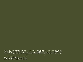 YUV 73.33,-13.967,-0.289 Color is a dark lime color and the nearest color is Woodland #4d5328. Hex code #494f2d and RGB value is rgb(73,79,45). In RGB color space, this color is composed of 29% red, 31% green, 18% blue, In CMYK color space, this color is composed of 8% cyan, 0% magenta, 43% yellow , 69% black , In HSL color space, this color has a hue angle of 71° , 27% saturation and 24% lightness.
