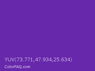YUV 73.771,47.934,25.634 Color is a normal violet color and the nearest color is Grape #6f2da8. Hex code #6728ab and RGB value is rgb(103,40,171). In RGB color space, this color is composed of 40% red, 16% green, 67% blue, In CMYK color space, this color is composed of 40% cyan, 77% magenta, 0% yellow , 33% black , In HSL color space, this color has a hue angle of 269° , 62% saturation and 41% lightness.