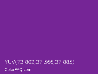 YUV 73.802,37.566,37.885 Color is a normal purple color and the nearest color is Seance #731e8f. Hex code #752596 and RGB value is rgb(117,37,150). In RGB color space, this color is composed of 46% red, 15% green, 59% blue, In CMYK color space, this color is composed of 22% cyan, 75% magenta, 0% yellow , 41% black , In HSL color space, this color has a hue angle of 282° , 60% saturation and 37% lightness.
