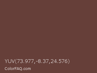 YUV 73.977,-8.37,24.576 Color is a normal red color and the nearest color is Quincy #623f2d. Hex code #663f39 and RGB value is rgb(102,63,57). In RGB color space, this color is composed of 40% red, 25% green, 22% blue, In CMYK color space, this color is composed of 0% cyan, 38% magenta, 44% yellow , 60% black , In HSL color space, this color has a hue angle of 8° , 28% saturation and 31% lightness.