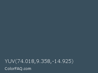 YUV 74.018,9.358,-14.925 Color is a dark blue color and the nearest color is River Bed #434c59. Hex code #394f5d and RGB value is rgb(57,79,93). In RGB color space, this color is composed of 22% red, 31% green, 36% blue, In CMYK color space, this color is composed of 39% cyan, 15% magenta, 0% yellow , 64% black , In HSL color space, this color has a hue angle of 203° , 24% saturation and 29% lightness.