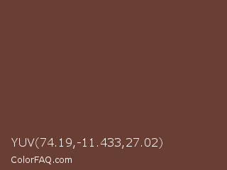 YUV 74.19,-11.433,27.02 Color is a normal red color and the nearest color is Spice #6a442e. Hex code #693f33 and RGB value is rgb(105,63,51). In RGB color space, this color is composed of 41% red, 25% green, 20% blue, In CMYK color space, this color is composed of 0% cyan, 40% magenta, 51% yellow , 59% black , In HSL color space, this color has a hue angle of 13° , 35% saturation and 31% lightness.