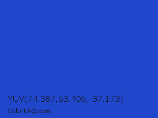 YUV 74.387,63.406,-37.173 Color is a normal blue color and the nearest color is New Car #214fc6. Hex code #2047cb and RGB value is rgb(32,71,203). In RGB color space, this color is composed of 13% red, 28% green, 80% blue, In CMYK color space, this color is composed of 84% cyan, 65% magenta, 0% yellow , 20% black , In HSL color space, this color has a hue angle of 226° , 73% saturation and 46% lightness.