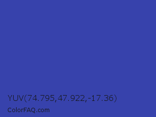 YUV 74.795,47.922,-17.36 Color is a normal blue color and the nearest color is Violet Blue #324ab2. Hex code #3742ac and RGB value is rgb(55,66,172). In RGB color space, this color is composed of 22% red, 26% green, 67% blue, In CMYK color space, this color is composed of 68% cyan, 62% magenta, 0% yellow , 33% black , In HSL color space, this color has a hue angle of 234° , 52% saturation and 45% lightness.