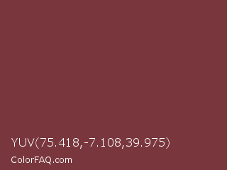 YUV 75.418,-7.108,39.975 Color is a normal red color and the nearest color is Catawba #703642. Hex code #79373d and RGB value is rgb(121,55,61). In RGB color space, this color is composed of 47% red, 22% green, 24% blue, In CMYK color space, this color is composed of 0% cyan, 55% magenta, 50% yellow , 53% black , In HSL color space, this color has a hue angle of 355° , 38% saturation and 35% lightness.