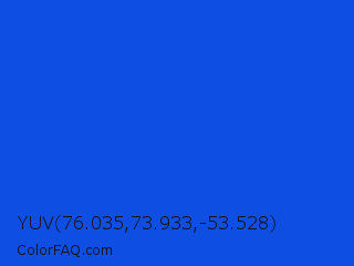 YUV 76.035,73.933,-53.528 Color is a normal blue color and the nearest color is Palatinate Blue #273be2. Hex code #0f4ee2 and RGB value is rgb(15,78,226). In RGB color space, this color is composed of 6% red, 31% green, 89% blue, In CMYK color space, this color is composed of 93% cyan, 65% magenta, 0% yellow , 11% black , In HSL color space, this color has a hue angle of 222° , 88% saturation and 47% lightness.