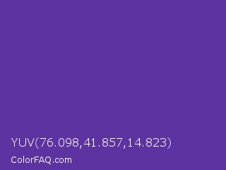 YUV 76.098,41.857,14.823 Color is a normal violet color and the nearest color is Rebecca Purple #663399. Hex code #5d33a1 and RGB value is rgb(93,51,161). In RGB color space, this color is composed of 36% red, 20% green, 63% blue, In CMYK color space, this color is composed of 42% cyan, 68% magenta, 0% yellow , 37% black , In HSL color space, this color has a hue angle of 263° , 52% saturation and 42% lightness.
