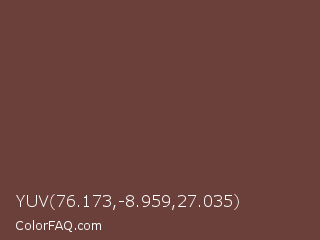 YUV 76.173,-8.959,27.035 Color is a normal red color and the nearest color is Roast Coffee #704241. Hex code #6b403a and RGB value is rgb(107,64,58). In RGB color space, this color is composed of 42% red, 25% green, 23% blue, In CMYK color space, this color is composed of 0% cyan, 40% magenta, 46% yellow , 58% black , In HSL color space, this color has a hue angle of 7° , 30% saturation and 32% lightness.