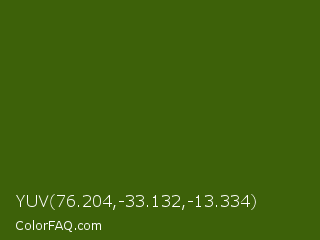YUV 76.204,-33.132,-13.334 Color is a very dark green color and the nearest color is Dell #396413. Hex code #3d6109 and RGB value is rgb(61,97,9). In RGB color space, this color is composed of 24% red, 38% green, 4% blue, In CMYK color space, this color is composed of 37% cyan, 0% magenta, 91% yellow , 62% black , In HSL color space, this color has a hue angle of 85° , 83% saturation and 21% lightness.