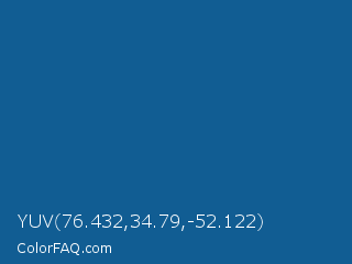 YUV 76.432,34.79,-52.122 Color is a normal blue color and the nearest color is Venice Blue #055989. Hex code #115d93 and RGB value is rgb(17,93,147). In RGB color space, this color is composed of 7% red, 36% green, 58% blue, In CMYK color space, this color is composed of 88% cyan, 37% magenta, 0% yellow , 42% black , In HSL color space, this color has a hue angle of 205° , 79% saturation and 32% lightness.
