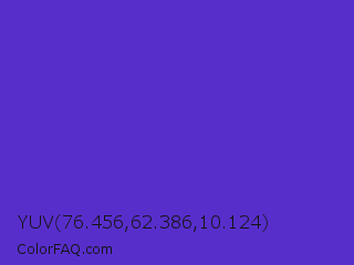 YUV 76.456,62.386,10.124 Color is a normal indigo color and the nearest color is Purple Heart Crayola #652dc1. Hex code #582ecb and RGB value is rgb(88,46,203). In RGB color space, this color is composed of 35% red, 18% green, 80% blue, In CMYK color space, this color is composed of 57% cyan, 77% magenta, 0% yellow , 20% black , In HSL color space, this color has a hue angle of 256° , 63% saturation and 49% lightness.