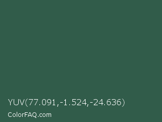YUV 77.091,-1.524,-24.636 Color is a dark green color and the nearest color is Stromboli #325d52. Hex code #315c4a and RGB value is rgb(49,92,74). In RGB color space, this color is composed of 19% red, 36% green, 29% blue, In CMYK color space, this color is composed of 47% cyan, 0% magenta, 20% yellow , 64% black , In HSL color space, this color has a hue angle of 155° , 30% saturation and 28% lightness.