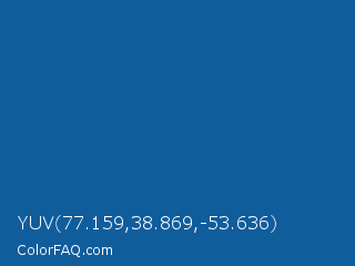 YUV 77.159,38.869,-53.636 Color is a normal blue color and the nearest color is Matisse #1b659d. Hex code #105d9c and RGB value is rgb(16,93,156). In RGB color space, this color is composed of 6% red, 36% green, 61% blue, In CMYK color space, this color is composed of 90% cyan, 40% magenta, 0% yellow , 39% black , In HSL color space, this color has a hue angle of 207° , 81% saturation and 34% lightness.