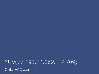 YUV 77.193,24.062,-17.709 Color is a normal blue color and the nearest color is East Bay #414c7d. Hex code #394e7e and RGB value is rgb(57,78,126). In RGB color space, this color is composed of 22% red, 31% green, 49% blue, In CMYK color space, this color is composed of 55% cyan, 38% magenta, 0% yellow , 51% black , In HSL color space, this color has a hue angle of 222° , 38% saturation and 36% lightness.