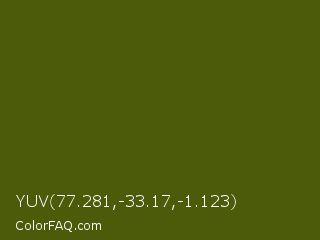 YUV 77.281,-33.17,-1.123 Color is a very dark lime color and the nearest color is Saratoga #555b10. Hex code #4c5b0a and RGB value is rgb(76,91,10). In RGB color space, this color is composed of 30% red, 36% green, 4% blue, In CMYK color space, this color is composed of 16% cyan, 0% magenta, 89% yellow , 64% black , In HSL color space, this color has a hue angle of 71° , 80% saturation and 20% lightness.