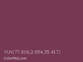 YUV 77.616,2.654,35.417 Color is a normal rose color and the nearest color is Cosmic #76395d. Hex code #763853 and RGB value is rgb(118,56,83). In RGB color space, this color is composed of 46% red, 22% green, 33% blue, In CMYK color space, this color is composed of 0% cyan, 53% magenta, 30% yellow , 54% black , In HSL color space, this color has a hue angle of 334° , 36% saturation and 34% lightness.