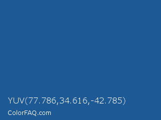 YUV 77.786,34.616,-42.785 Color is a normal blue color and the nearest color is Cyan Cobalt Blue #28589c. Hex code #1d5994 and RGB value is rgb(29,89,148). In RGB color space, this color is composed of 11% red, 35% green, 58% blue, In CMYK color space, this color is composed of 80% cyan, 40% magenta, 0% yellow , 42% black , In HSL color space, this color has a hue angle of 210° , 67% saturation and 35% lightness.