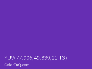 YUV 77.906,49.839,21.13 Color is a normal violet color and the nearest color is Purple Heart Crayola #652dc1. Hex code #662eb3 and RGB value is rgb(102,46,179). In RGB color space, this color is composed of 40% red, 18% green, 70% blue, In CMYK color space, this color is composed of 43% cyan, 74% magenta, 0% yellow , 30% black , In HSL color space, this color has a hue angle of 265° , 59% saturation and 44% lightness.
