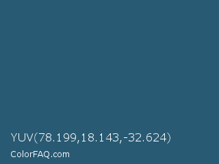 YUV 78.199,18.143,-32.624 Color is a normal blue color and the nearest color is Casal #2f6168. Hex code #295a73 and RGB value is rgb(41,90,115). In RGB color space, this color is composed of 16% red, 35% green, 45% blue, In CMYK color space, this color is composed of 64% cyan, 22% magenta, 0% yellow , 55% black , In HSL color space, this color has a hue angle of 200° , 47% saturation and 31% lightness.