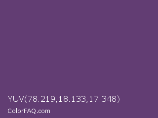 YUV 78.219,18.133,17.348 Color is a normal purple color and the nearest color is Cyber Grape #58427c. Hex code #623d73 and RGB value is rgb(98,61,115). In RGB color space, this color is composed of 38% red, 24% green, 45% blue, In CMYK color space, this color is composed of 15% cyan, 47% magenta, 0% yellow , 55% black , In HSL color space, this color has a hue angle of 281° , 31% saturation and 35% lightness.