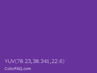 YUV 78.23,38.341,22.6 Color is a normal purple color and the nearest color is Purple Heart #69359c. Hex code #68329c and RGB value is rgb(104,50,156). In RGB color space, this color is composed of 41% red, 20% green, 61% blue, In CMYK color space, this color is composed of 33% cyan, 68% magenta, 0% yellow , 39% black , In HSL color space, this color has a hue angle of 271° , 51% saturation and 40% lightness.