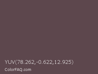 YUV 78.262,-0.622,12.925 Color is a normal rose color and the nearest color is Don Juan #5d4c51. Hex code #5d474d and RGB value is rgb(93,71,77). In RGB color space, this color is composed of 36% red, 28% green, 30% blue, In CMYK color space, this color is composed of 0% cyan, 24% magenta, 17% yellow , 64% black , In HSL color space, this color has a hue angle of 344° , 13% saturation and 32% lightness.