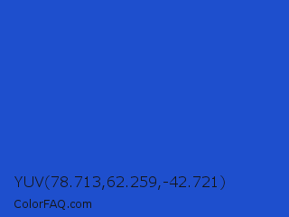 YUV 78.713,62.259,-42.721 Color is a normal blue color and the nearest color is New Car #214fc6. Hex code #1e4fcd and RGB value is rgb(30,79,205). In RGB color space, this color is composed of 12% red, 31% green, 80% blue, In CMYK color space, this color is composed of 85% cyan, 61% magenta, 0% yellow , 20% black , In HSL color space, this color has a hue angle of 223° , 74% saturation and 46% lightness.
