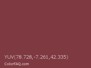YUV 78.728,-7.261,42.335 Color is a normal red color and the nearest color is Lotus #863c3c. Hex code #7f3940 and RGB value is rgb(127,57,64). In RGB color space, this color is composed of 50% red, 22% green, 25% blue, In CMYK color space, this color is composed of 0% cyan, 55% magenta, 50% yellow , 50% black , In HSL color space, this color has a hue angle of 354° , 38% saturation and 36% lightness.