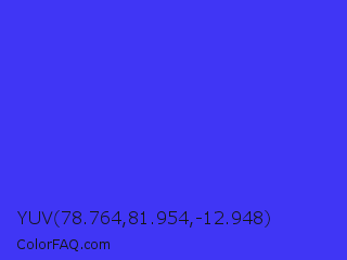 YUV 78.764,81.954,-12.948 Color is a normal indigo color and the nearest color is Palatinate Blue #273be2. Hex code #4036f5 and RGB value is rgb(64,54,245). In RGB color space, this color is composed of 25% red, 21% green, 96% blue, In CMYK color space, this color is composed of 74% cyan, 78% magenta, 0% yellow , 4% black , In HSL color space, this color has a hue angle of 243° , 91% saturation and 59% lightness.