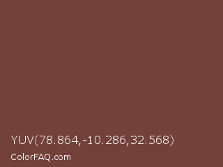 YUV 78.864,-10.286,32.568 Color is a normal red color and the nearest color is Medium Tuscan Red #79443b. Hex code #74403a and RGB value is rgb(116,64,58). In RGB color space, this color is composed of 45% red, 25% green, 23% blue, In CMYK color space, this color is composed of 0% cyan, 45% magenta, 50% yellow , 55% black , In HSL color space, this color has a hue angle of 6° , 33% saturation and 34% lightness.
