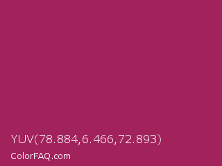 YUV 78.884,6.466,72.893 Color is a normal rose color and the nearest color is Amaranth Deep Purple #9f2b68. Hex code #a2225c and RGB value is rgb(162,34,92). In RGB color space, this color is composed of 64% red, 13% green, 36% blue, In CMYK color space, this color is composed of 0% cyan, 79% magenta, 43% yellow , 36% black , In HSL color space, this color has a hue angle of 333° , 65% saturation and 38% lightness.