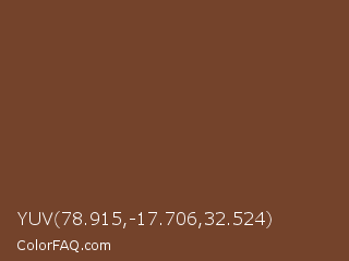 YUV 78.915,-17.706,32.524 Color is a normal orange color and the nearest color is Old Copper #724a2f. Hex code #74432b and RGB value is rgb(116,67,43). In RGB color space, this color is composed of 45% red, 26% green, 17% blue, In CMYK color space, this color is composed of 0% cyan, 42% magenta, 63% yellow , 55% black , In HSL color space, this color has a hue angle of 20° , 46% saturation and 31% lightness.