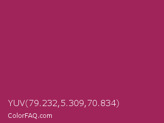 YUV 79.232,5.309,70.834 Color is a normal rose color and the nearest color is Amaranth Deep Purple #9f2b68. Hex code #a0245a and RGB value is rgb(160,36,90). In RGB color space, this color is composed of 63% red, 14% green, 35% blue, In CMYK color space, this color is composed of 0% cyan, 78% magenta, 44% yellow , 37% black , In HSL color space, this color has a hue angle of 334° , 63% saturation and 38% lightness.