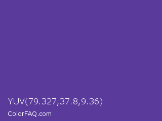 YUV 79.327,37.8,9.36 Color is a normal indigo color and the nearest color is Gigas #523c94. Hex code #5a3b9c and RGB value is rgb(90,59,156). In RGB color space, this color is composed of 35% red, 23% green, 61% blue, In CMYK color space, this color is composed of 42% cyan, 62% magenta, 0% yellow , 39% black , In HSL color space, this color has a hue angle of 259° , 45% saturation and 42% lightness.