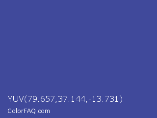 YUV 79.657,37.144,-13.731 Color is a normal blue color and the nearest color is Sapphire #2f519e. Hex code #40499b and RGB value is rgb(64,73,155). In RGB color space, this color is composed of 25% red, 29% green, 61% blue, In CMYK color space, this color is composed of 59% cyan, 53% magenta, 0% yellow , 39% black , In HSL color space, this color has a hue angle of 234° , 42% saturation and 43% lightness.