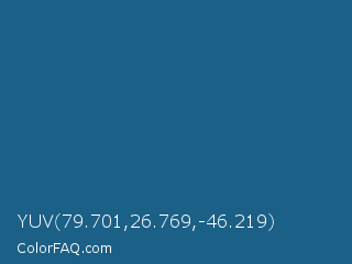 YUV 79.701,26.769,-46.219 Color is a normal blue color and the nearest color is Blue Sapphire #126180. Hex code #1b6086 and RGB value is rgb(27,96,134). In RGB color space, this color is composed of 11% red, 38% green, 53% blue, In CMYK color space, this color is composed of 80% cyan, 28% magenta, 0% yellow , 47% black , In HSL color space, this color has a hue angle of 201° , 66% saturation and 32% lightness.