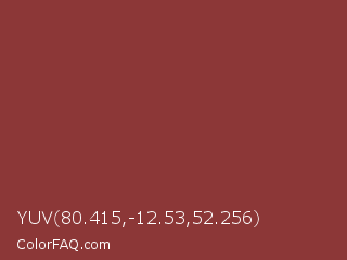 YUV 80.415,-12.53,52.256 Color is a normal red color and the nearest color is Sanguine Brown #8d3d38. Hex code #8c3737 and RGB value is rgb(140,55,55). In RGB color space, this color is composed of 55% red, 22% green, 22% blue, In CMYK color space, this color is composed of 0% cyan, 61% magenta, 61% yellow , 45% black , In HSL color space, this color has a hue angle of 0° , 44% saturation and 38% lightness.