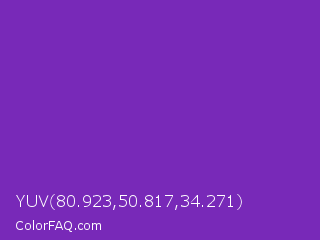 YUV 80.923,50.817,34.271 Color is a normal purple color and the nearest color is Grape #6f2da8. Hex code #7829b8 and RGB value is rgb(120,41,184). In RGB color space, this color is composed of 47% red, 16% green, 72% blue, In CMYK color space, this color is composed of 35% cyan, 78% magenta, 0% yellow , 28% black , In HSL color space, this color has a hue angle of 273° , 64% saturation and 44% lightness.