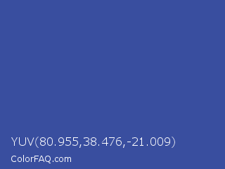 YUV 80.955,38.476,-21.009 Color is a normal blue color and the nearest color is Sapphire #2f519e. Hex code #394e9f and RGB value is rgb(57,78,159). In RGB color space, this color is composed of 22% red, 31% green, 62% blue, In CMYK color space, this color is composed of 64% cyan, 51% magenta, 0% yellow , 38% black , In HSL color space, this color has a hue angle of 228° , 47% saturation and 42% lightness.
