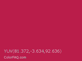 YUV 81.372,-3.634,92.636 Color is a normal rose color and the nearest color is Maroon Flush #c32148. Hex code #bb1d4a and RGB value is rgb(187,29,74). In RGB color space, this color is composed of 73% red, 11% green, 29% blue, In CMYK color space, this color is composed of 0% cyan, 84% magenta, 60% yellow , 27% black , In HSL color space, this color has a hue angle of 343° , 73% saturation and 42% lightness.